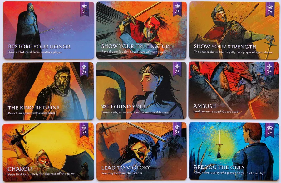 Viduje rasite 23 išskirtinius veikėjus su daug pasirenkamų modulių, kaip Lancelots, Excalibur, Plot Cards, Sorcerers ir Rogues, išleistų kaip Avalon ir The Resistance papildymai prieš tai. Taipogi rasite naujas roles ir modulius kaip Messengers, Lunatic, Brute, Revealer, Cleric, Trickster, ir Deceiver.
