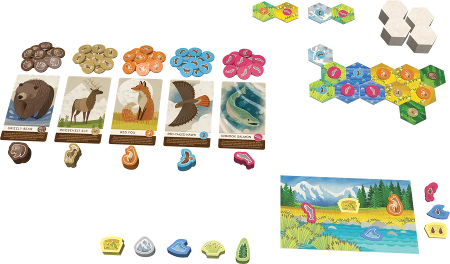 Ką pamatysite per savo nuotykį Cascadia? Savo ėjimo metu, plėskite savo žemėlapį ir suderinkite gyvūnus su buveinėmis, kad pridėti juos prie savo panoramos ir užsidirbti taškų! Cascadia Junior leis jaunesniems žaidėjams patirti unikalų apdovanojimų pelniusio stalo žaidimo Cascadia galvosūkį. Šis žaidimas moko atpažinti tam tikras sekas, rinkinių rinkimo ir paprastos sudėties. Išmokite apie meškas, vanagus, elnius, lašišas ir lapes šioje įvairioje žemėje su kalnais, pelkėmis, laukais, upėmis ir miškais.