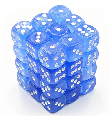Chessex Borealis 12mm d6 Sky Blue/white Luminary Dice Block (36 dice) (Kauliukai)