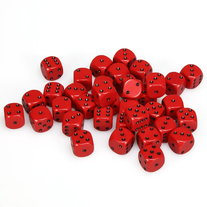 Chessex Opaque 12mm d6 with pips Dice Blocks (36 Dice) – Red w/black (Kauliukai)
