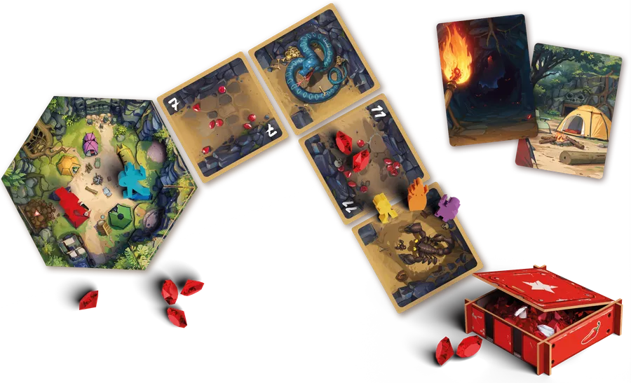 O koks jums tikslas išeiti? Nes kaladėje rasite įvairių spąstų: skorpionai, gyvatės, nuodingos dujos, sprogimai ir krentantys akmenys. Kada tam tikri spąstai yra atverčiami antrą kartą (pavyzdžiui antras skorpionas), bet kas kasykloje arba ant kelio turi numesti visus savo surinktus brangakmenius tą raundą ir bėgti likt saugumo. Esmė tame, kad kuo daugiau žaidėjų palieka kasyklą, tuo didesnė yra jūsų atverstų brangakmenių dalis – bet taipogi didesnė ir rizika negauti nieko.