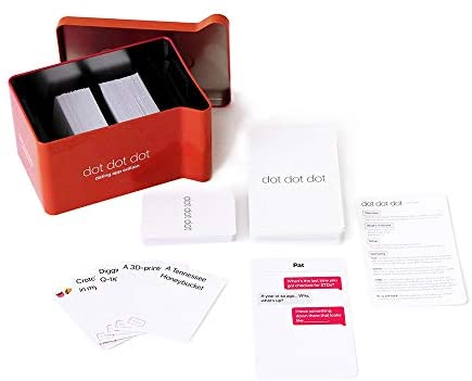 Dot Dot Dot yra baisių žinučių suaugusiųjų vakarėlių žaidimas. Pabaikite trumpąją žinutę su juokingiausia atsakymo korta ir jūs užtikrintai laimėsite. Bet, tiesa pasakius, žaidimo esmė ne laimėjimas, tai juokas ir mėgavimasis draugų oir šeimos draugija. Dot Dot Dot rasite supakuotą į patvarią alavinę dėžutę, kurią lengvą įsimesti keliaujant. Žaiskite Dot Dot Dot savo kitos kelionės metu, nesvarbu ar prie jūros, stovyklaujant ar tik išvykus savaitgaliui. Žaidimas tinka didelėms draugų ar šeimos grupėms.