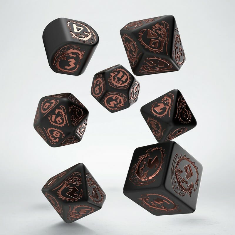 Dragons Modern Dice Set Black & Copper (7) (Kauliukai)
