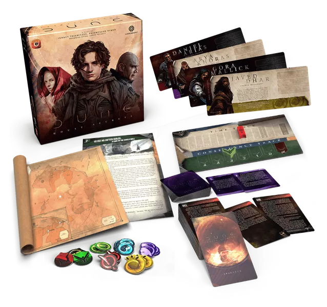 Kooperacinė žaidimo sistema, pirmiausia matyta Portal Detective: A Modern Crime Board Game, sugrįžta Dune: House Secrets ir su savimi atsineša itin tematinę patirtį, kuri numeta nuo vieno iki keturių žaidėjų viduryje dramatiškų įvykių, vykstančių žiaurioje dykumų planetoje Arrakis.