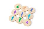 Who can remember most of the moves? Each disc pictures a movement which you have to perform. The players who cannot remember the right move, will lose the game. This game can be played with as many friends or family members as you wish.