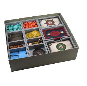 This Campaign 3 insert is designed to be compatible with Scythe Fenris®, the Wind Gambit® and Scythe Encounters® expansions. The design provides both efficient storage and improved game play. The trays can be utilised during the game, and they greatly aid set-up and clear-away times. The rules and boards act as a lid on top of the trays. This insert can be combined with FS-SCY insert in the Legendary box as described below. the insert is origanised with the miniatures on the bottom level, and the rest of the components on top. There are three card trays for the airship & resolution tiles and other large cards. There are two long trays for other game tiles, including one slot for the Tesla mono-wheel miniature. There are then two separate trays for the faction pieces. There are trays for the two faction mechs and leader miniatures, and then two large trays for the airships. The airship trays store the miniatures snugly head-to-toe in a neat order. The last airship slot is used for the ships’ bases. At the end of each of the trays are slots for vertical storage of the infrastructure and mech mods. the main rulebook goes on top with the binder ring as shown. Then go the reference sheet, followed by the score-sheet and other campaign tiles. This is followed by the Wind Gambit rules and the player boards. Lastly go the combat dials. The box can be stored vertically. This insert can also be combined with FS-SCY insert for Scythe inside the Legendary Box, with the board extension, as shown here. The best way to do this is to add the FS-SCY insert to the box with the boards on top, and then simply place the Fenris box, with FS-SCY inside, on top. This fills the box and holds the bottom trays in place. Alternatively, the FS-SCY trays can be added separately to the Legendary Box. This product consists of a flat-pack of 6 Evacore sheets. The trays require assembly, which is quick and fun, using ordinary PVA glue. Detailed instructions are included in the package.