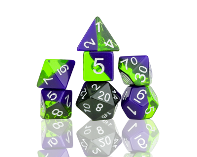 Daugiasienių kauliukų rinkinys skirtas vaidmenų žaidimams. Rinkinyje rasite po vieną d4, d6, d8, d10, d10s, d12 ir d20 kauliuką.