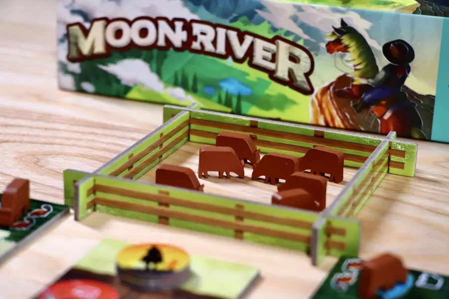 Vietoj to, kad statyti savo reljefą aplinkui centrinę pilį, j9s pradėsite nuo upės ir plėsitės tolyn. Karūnos, naudotos Kingdomino, šiame žaidime pakeistos į karves ir žaidėjai galės naudoti kaubojus, kad jas judinti.