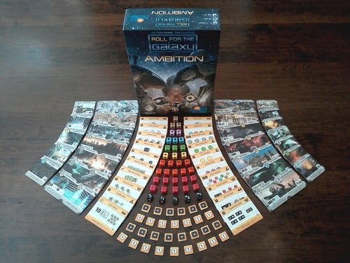 Roll for the Galaxy is a dice game of building space empires for 2–5 players. Your dice represent your populace, whom you direct to develop new technologies, settle worlds, and ship goods. The player who best manages his workers and builds the most prosperous empire wins!