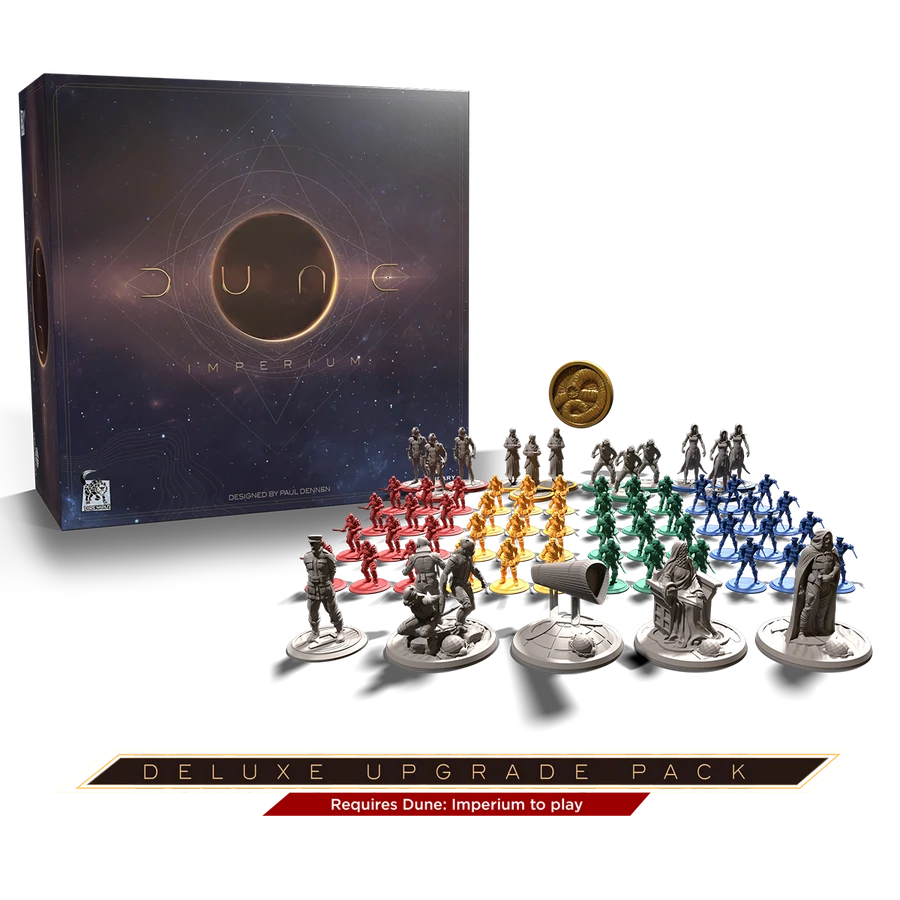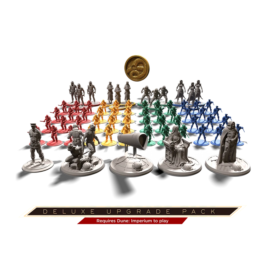 Patobulinkite savo Dune: Imperium patirtį su šiuo Deluxe Upgrade Pack! Šis kosmetinis papildymas patobulina komponentus esančius pagrindiniame žaidime labiau įtraukiančiai patirčiai. Visi komponentai randami didelėje dėžėje su plastikiniais dėklais, kuriuose telpa visas žaidimas (kartu su kortomis įmautėse).