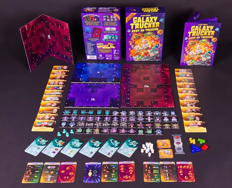 Ar jūs šaipotės iš piratų, ignoruojate combat zonas ir sutinkate visus meteorus patrankų ugnimi? Jeigu jau įvaldėte Galaxy Trucker pagrindus, tai reiškia esate pasiruošęs Galaxy Trucker: Keep on Trucking!