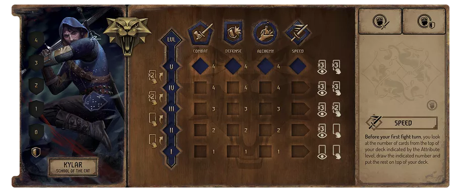 Žaidimas leidžia žaidėjams sukurti savo unikalias kortų kalades pasirenkant iš plataus sugebėjimų asortimento: atakos, staigūs judesiai ir raganių kovinė magija – žinoma kaip „ženklai”. Per kortų sinergiją, žaidėjai siekia atlikti galingas kombinacijas naudojant savo raganių mokyklos sugebėjimus iki jų ribų. Misijos, kovos ir net kauliukų pokeris leidžia žaidėjams užsidirbti pinigų, gauti naujų daiktų ir treniruoti naujus sugebėjimus.