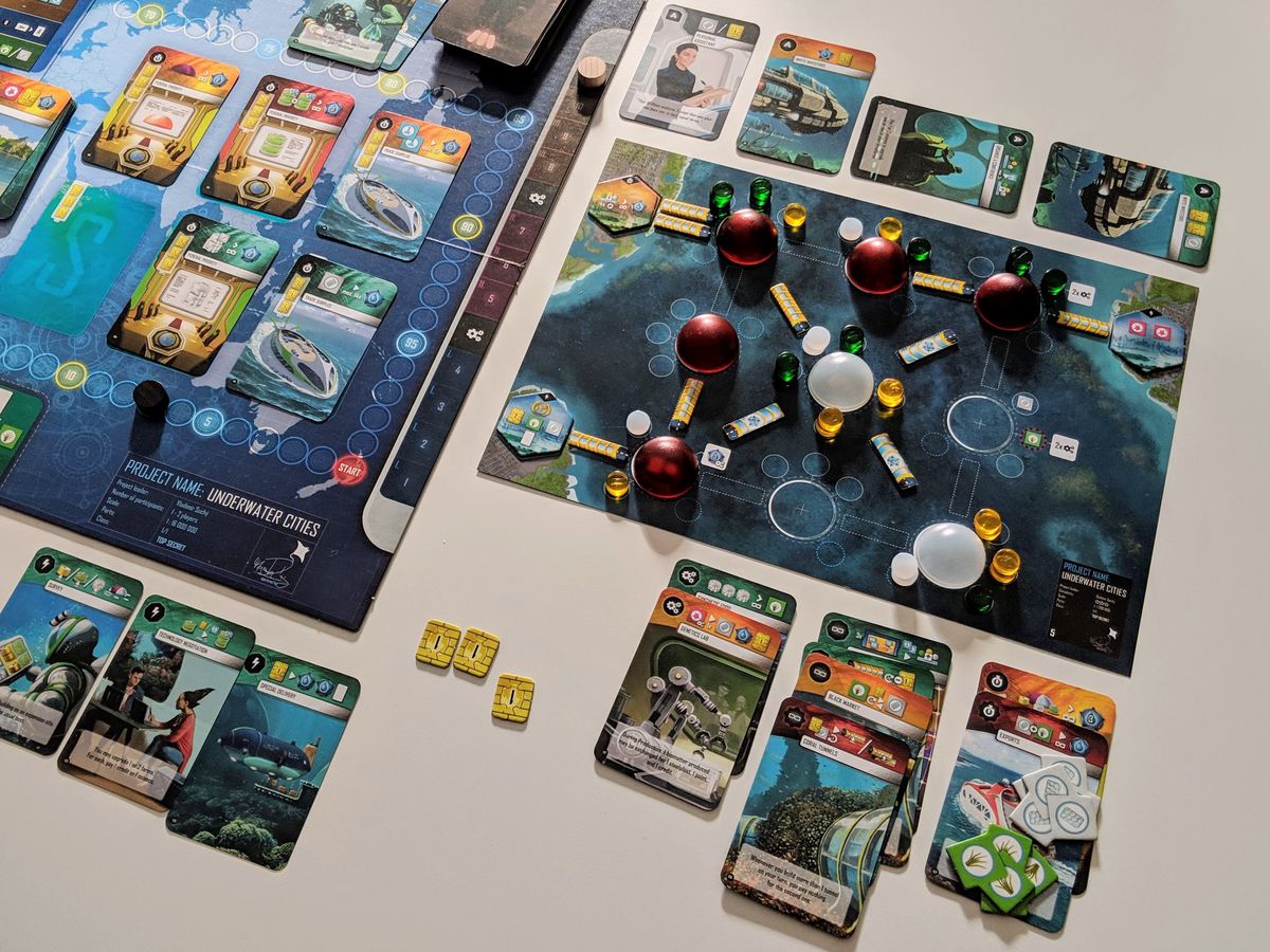 In Underwater Cities, which takes about 30-45 minutes per player, players represent the most powerful brains in the world, brains nominated due to the overpopulation of Earth to establish the best and most livable underwater areas possible.