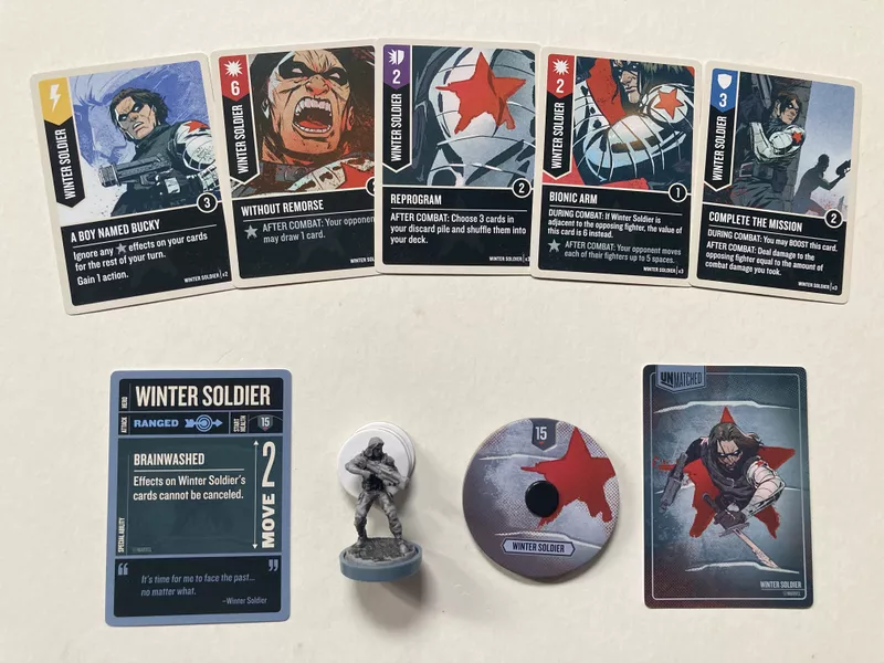 Unmatched: For King and Country rasite tris veikėjus iš Marvel komiksų istorijų: Black Widow, Black Panther ir Winter Soldier.
