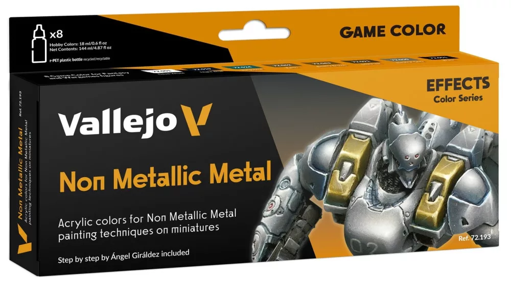Vallejo dažų rinkinys, specialiai skirtas norintiems naudoti Non-Metallic Metals techniką. Rinkinyje rasite: